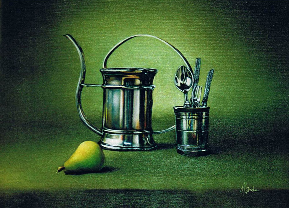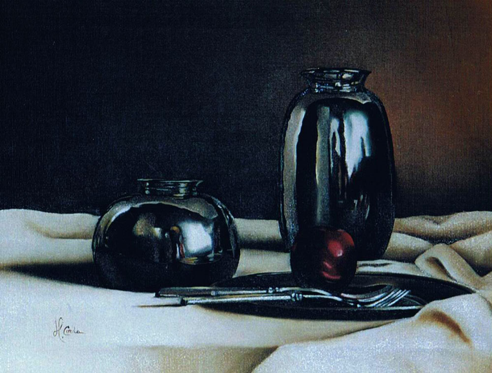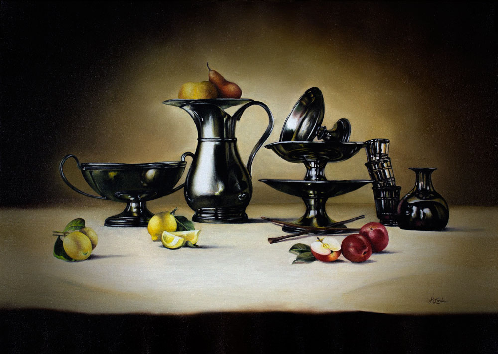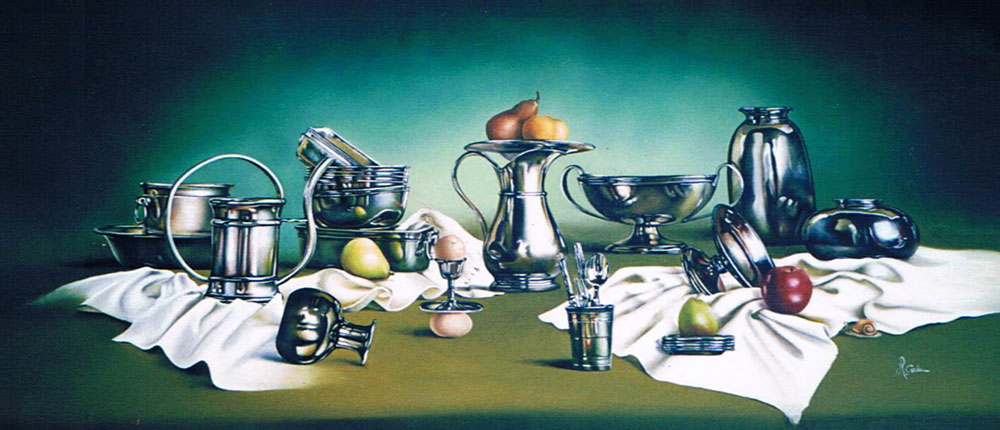 Composizione di peltri - opera n. 186 - Olio su tela - 110 x 50 cm - 2004 - Non Disponibile