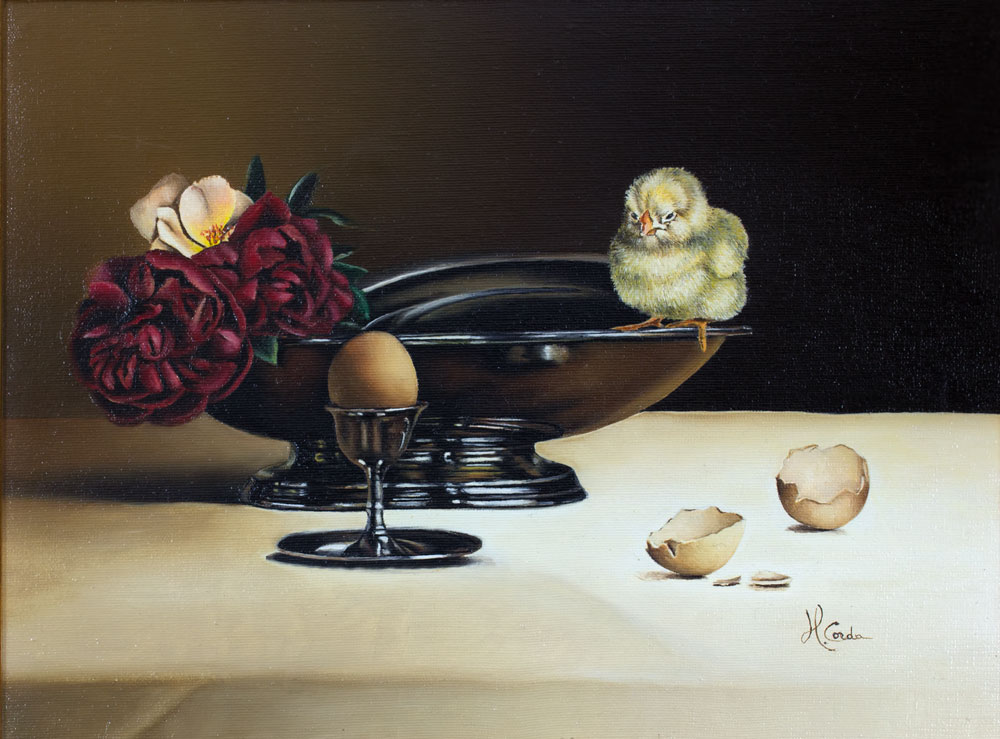 Natura morta con pulcino - Olio su tela - 30 x 40 cm - 2003 - Disponibile
