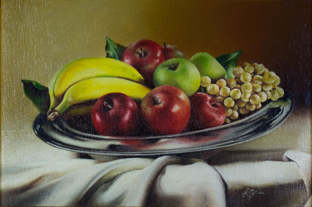 Composizione di frutta - Olio su tela - 31,3 x 21 cm - 2006 - Disponibile