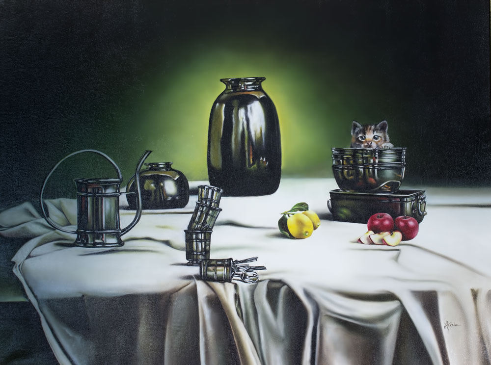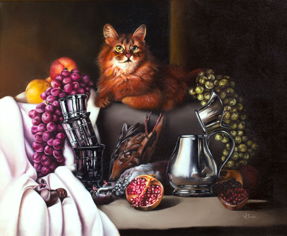 Natura morta con gatto - Olio su tela - 60 x 80 cm - 2015 - Disponibile