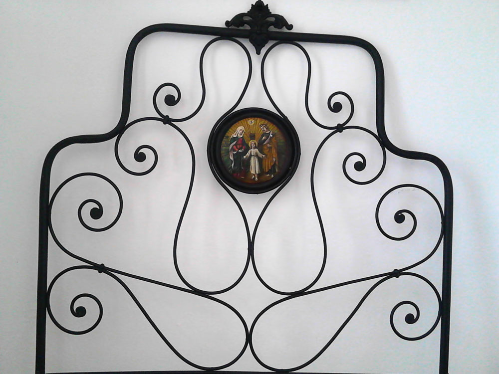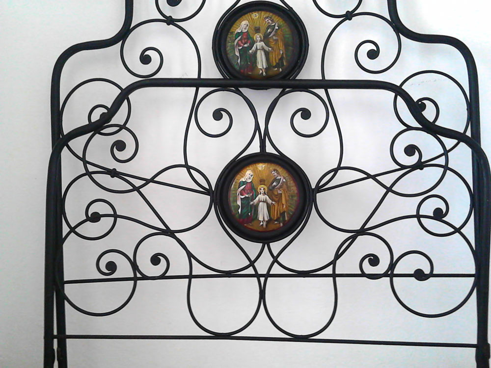 Restauro medaglioni di un letto fine '800: Testiera "prima" - 2015